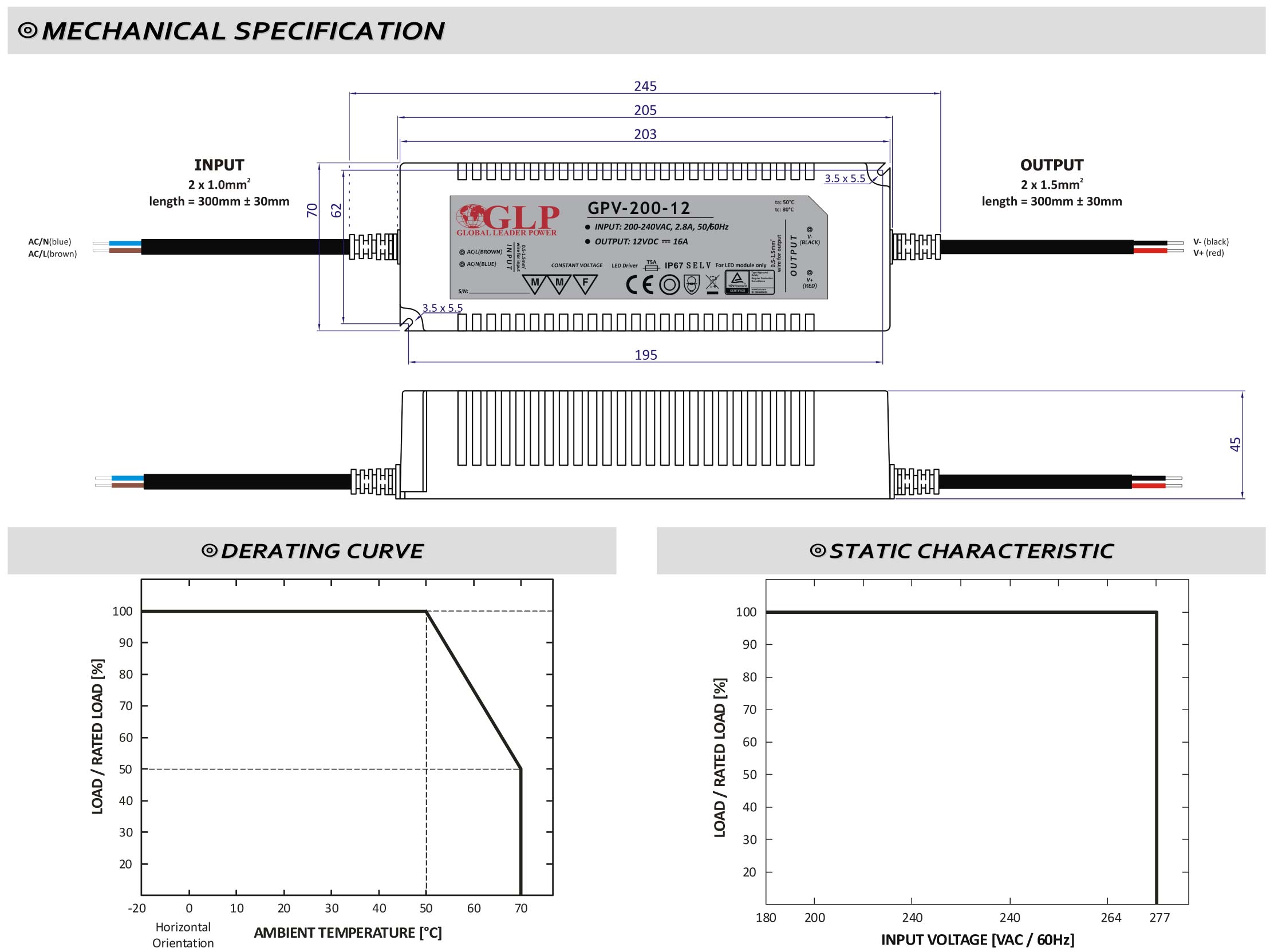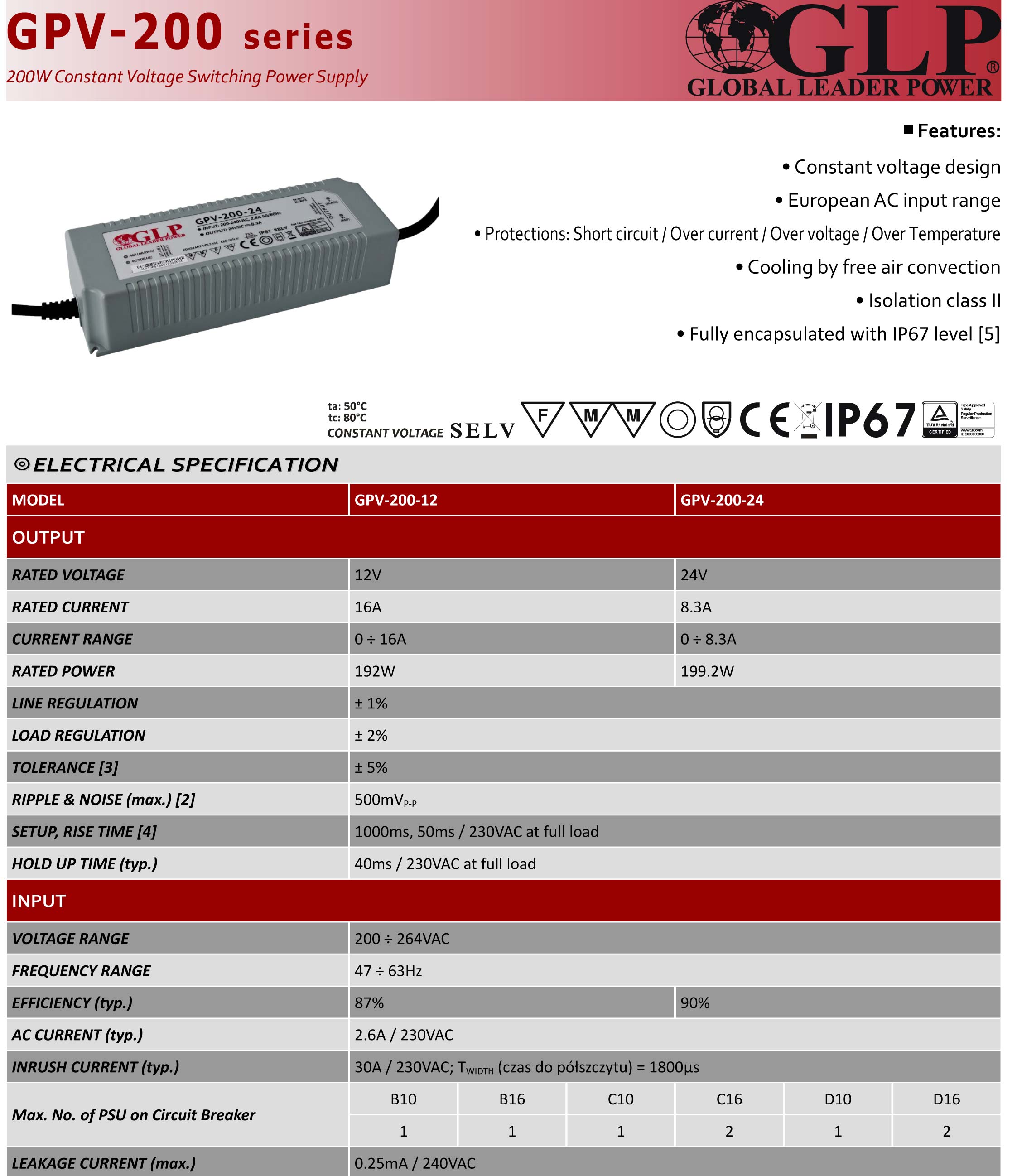 Αδιάβροχο 192W Πλαστικό Τροφοδοτικό 12V IP67 GPV-200 GLP