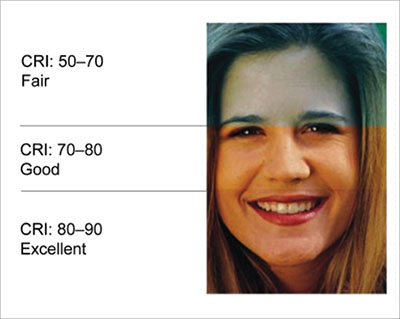 Ένας μέσης κλάσης LED φωτισμός έχει CRI στο όριο των 60-80 και 80-95 για πηγές υψηλές ποιότητας.