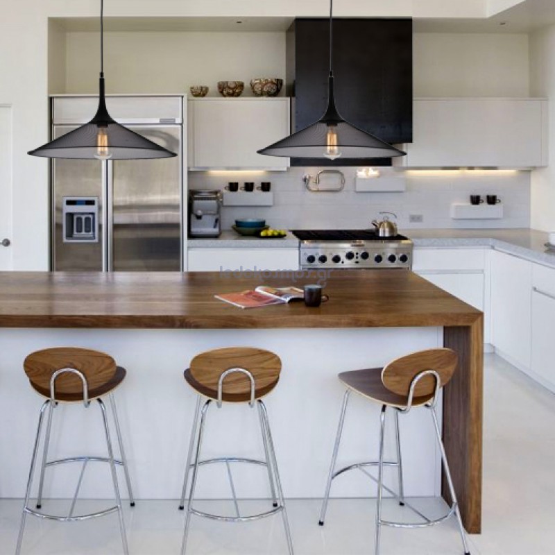 Επίσης, το φωτιστικό θα πρέπει να τοποθετηθεί σε τέτοιο ύψος από το τραπέζι που να μην εμποδίζει την επαφή με τα μάτια ανάμεσα στους συνδαιτυμόνες.Η τελευταία τάση προστάζει το φωτιστικό να κατεβαίνει αρκετά χαμηλά, 75 με 80 cm από την επιφάνεια του τραπεζιού. Σε αυτή την περίπτωση συνήθως “φοράει” άμεσο φωτισμό που φωτίζει κατευθείαν την επιφάνεια του.