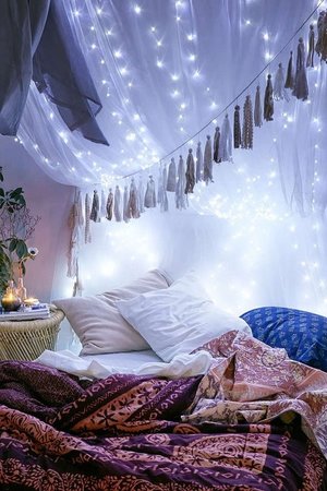 Θα μπορούσατε να δημιουργήσετε ένα θόλο πάνω από το κρεβάτι σας με ύφασμα και δροσερά φώτα αλυσίδας ή να χρησιμοποιήσετε ζεστά λευκά φώτα.