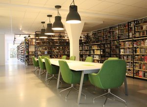 Τα γενικά φωτιστικά LED που τοποθετούνται παράλληλα στα ράφια των βιβλίων μειώνουν την καταπόνηση των ματιών και παρέχουν το πιο ομοιόμορφο φως στους διαδρόμους.