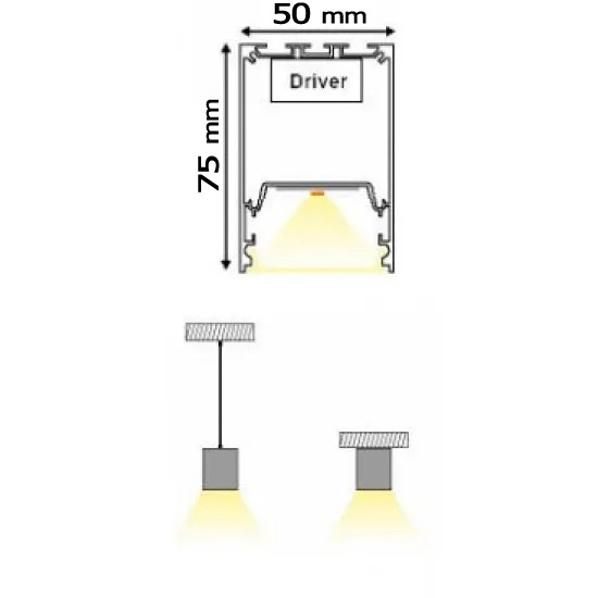 Επαγγελματικό Γραμμικό Φωτιστικό Οροφής κρεμαστό από αλουμίνιο.