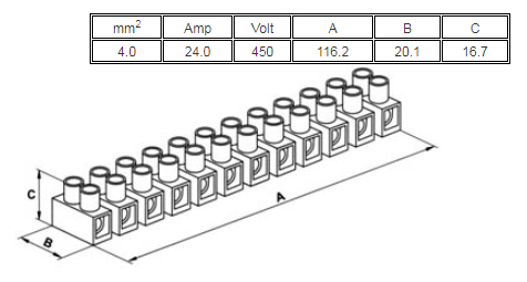 Κλέμα Ηλεκτρολογική Πολυπροπυλενίου (PP) 12P 4mm² 85° Ορειχάλκινη HVP TOP ELECTRONIC