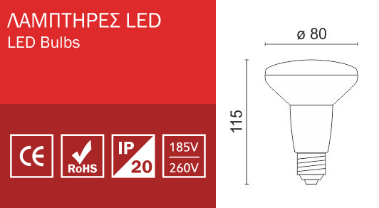 Λάμπα LED Ε27 10W R80 Πλαστικό Spotlight