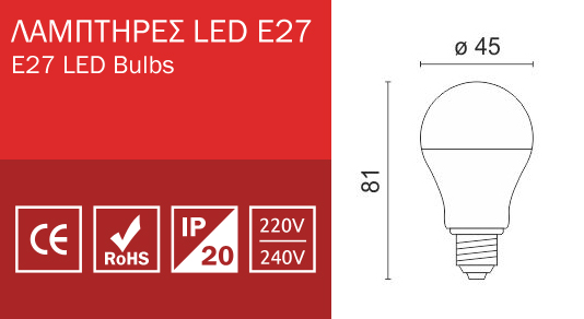 Λάμπα Led E27 5W Spotlight P45