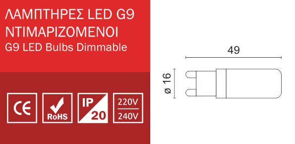 Λαμπτήρας LED 4W G9 220V Dimmable Spotlight