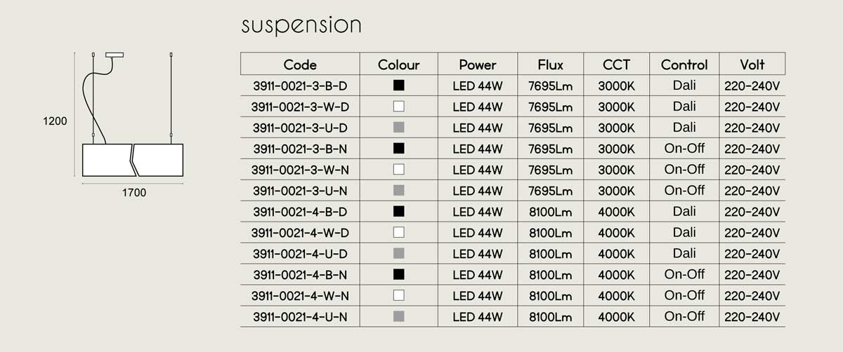LED Κρεμαστό Φωτιστικό Γραμμικό 44W 1700mm - STATION ULTRA - VIOKEF