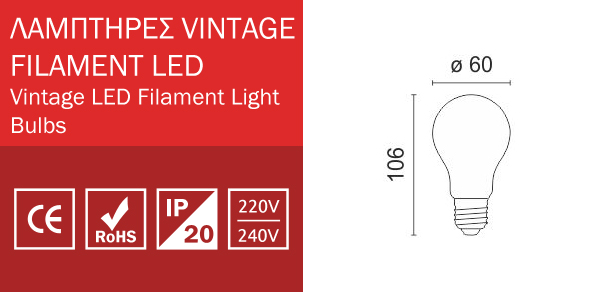 LED Λάμπα Filament A60 Ε27 7W 230V Dimmable SpotLight