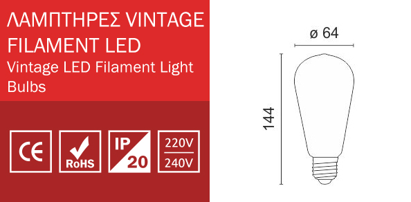 LED Λάμπα Filament ST64 Ε27 7W 230V Dimmable SpotLight