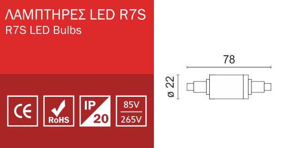 Led Λάμπα Τύπου Ιωδίνης R7S 6W 78mm Spotlight