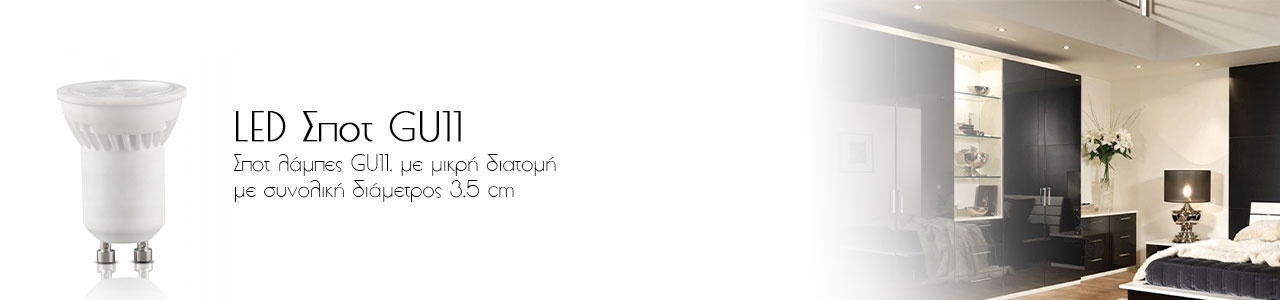 Τα σποτ GU11 είναι ίδιας φιλοσοφίας με τα σποτ GU10 απλά διαφέρουν στη διατομή. Συγκεκριμένα η διατομή του GU11 είναι μικρότερη με συνολική διάμετρος 3.5 cm ενώ τα GU10 έχουν διάμετρο 5cm.