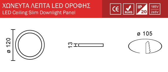 Στρογγυλό LED Panel Slim Downlight 6W SMD Λευκό Σώμα SpotLight