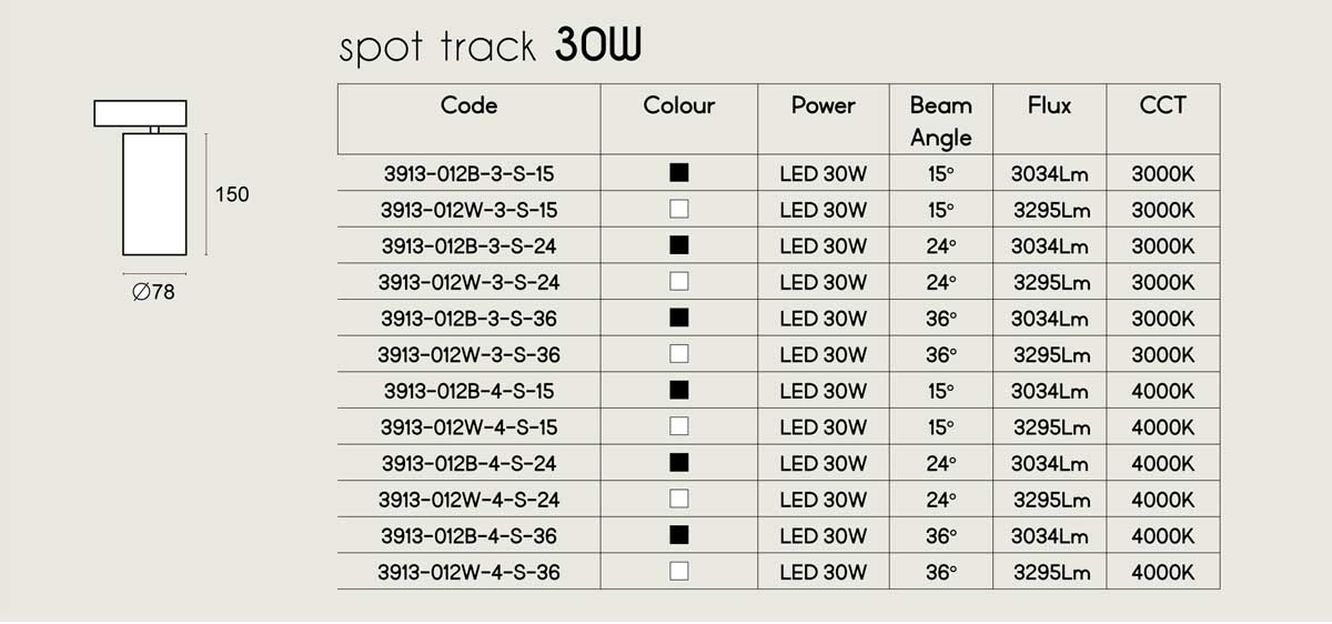 Track Spot Οροφής 30W CRI>90 UGR<19 HERCULES - VIOKEF